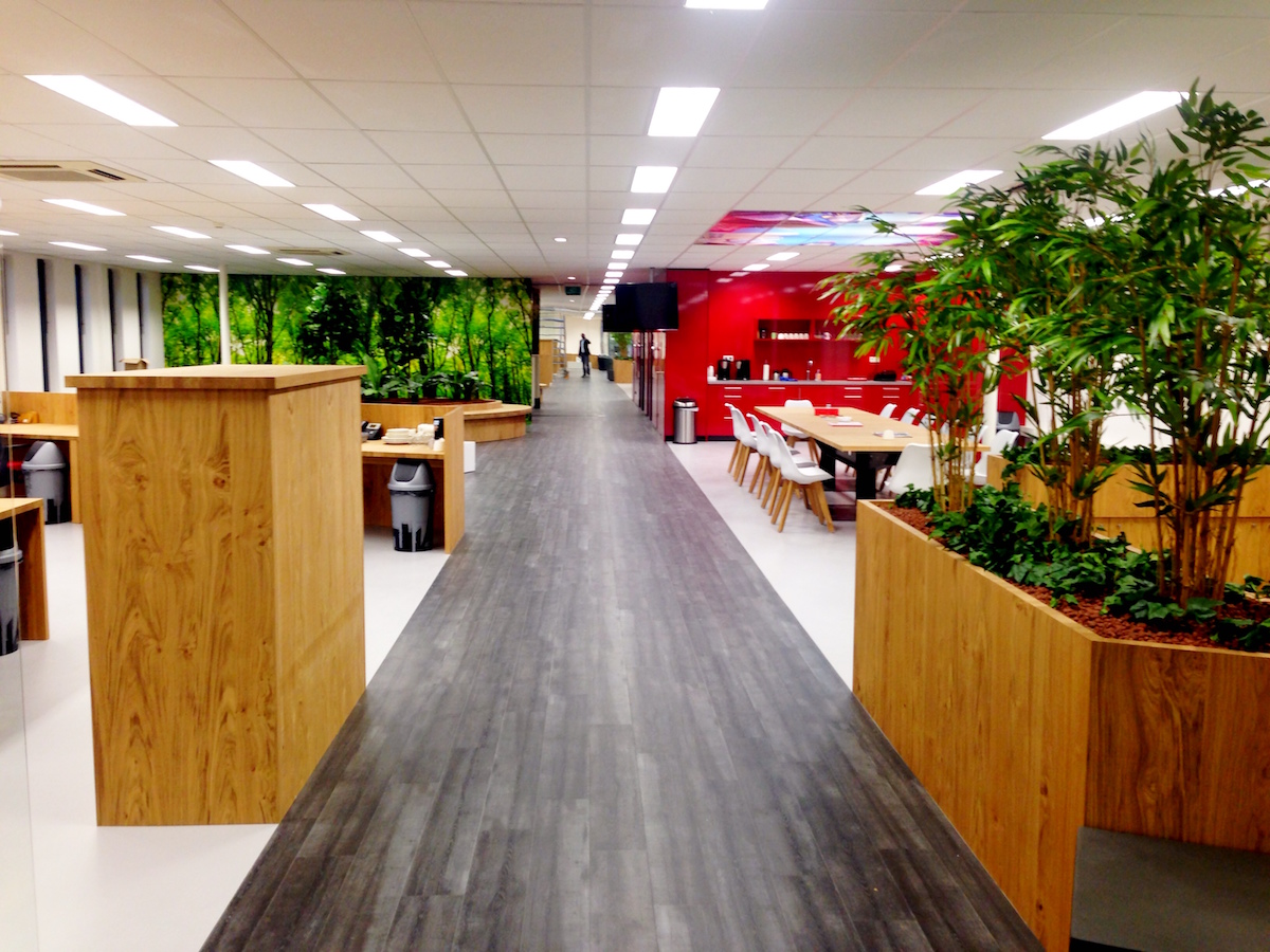 Grijze houten vloer in combinatie met een accentkleur