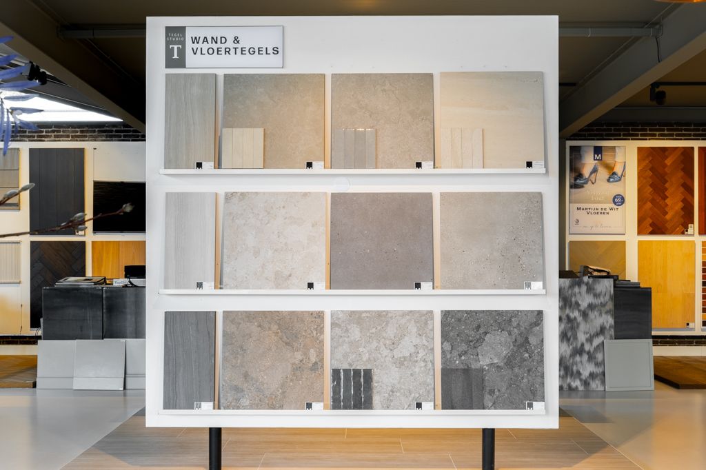 In onze showrooms bewondert u de mooiste tegelvloeren en wandtegels. We maken hierbij moodboards in combinatie met bijvoorbeeld onze houten vloeren of tapijten.